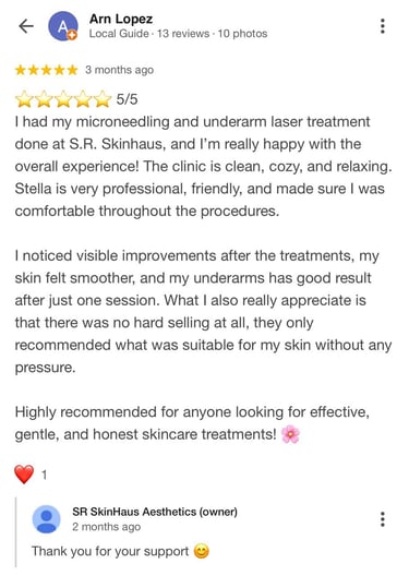 S.R SkinHaus Aesthetics is committed to delivering safe, effective, and personalised aesthetic treatments that enhance beauty, improve skin concerns, and build self-confidence.